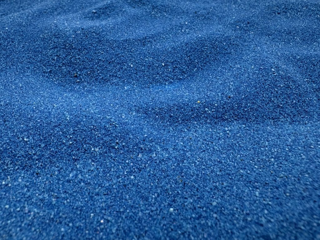 Barevný dekorační písek, barva modrá.