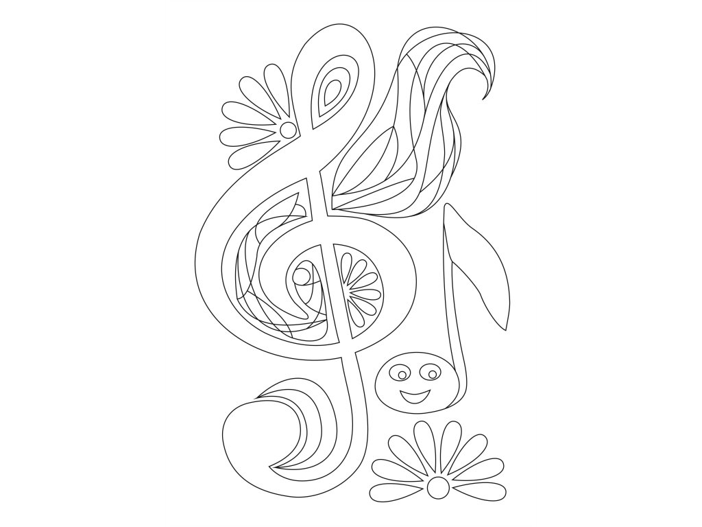 Unikátní motiv šablony Houslový klíč ve formě před řezané papírové samolepky pro tvorbu s barevným pískem. Obdélníková samolepicí šablona lze objednat v různých rozměrech až do velikosti 460 x 650 mm.