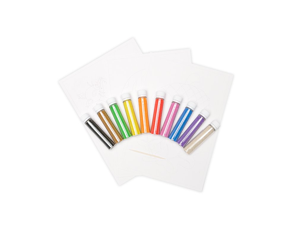 - Sada je nejdostupnější možnost jak vyzkoušet techniku tvoření s barevným pískem.